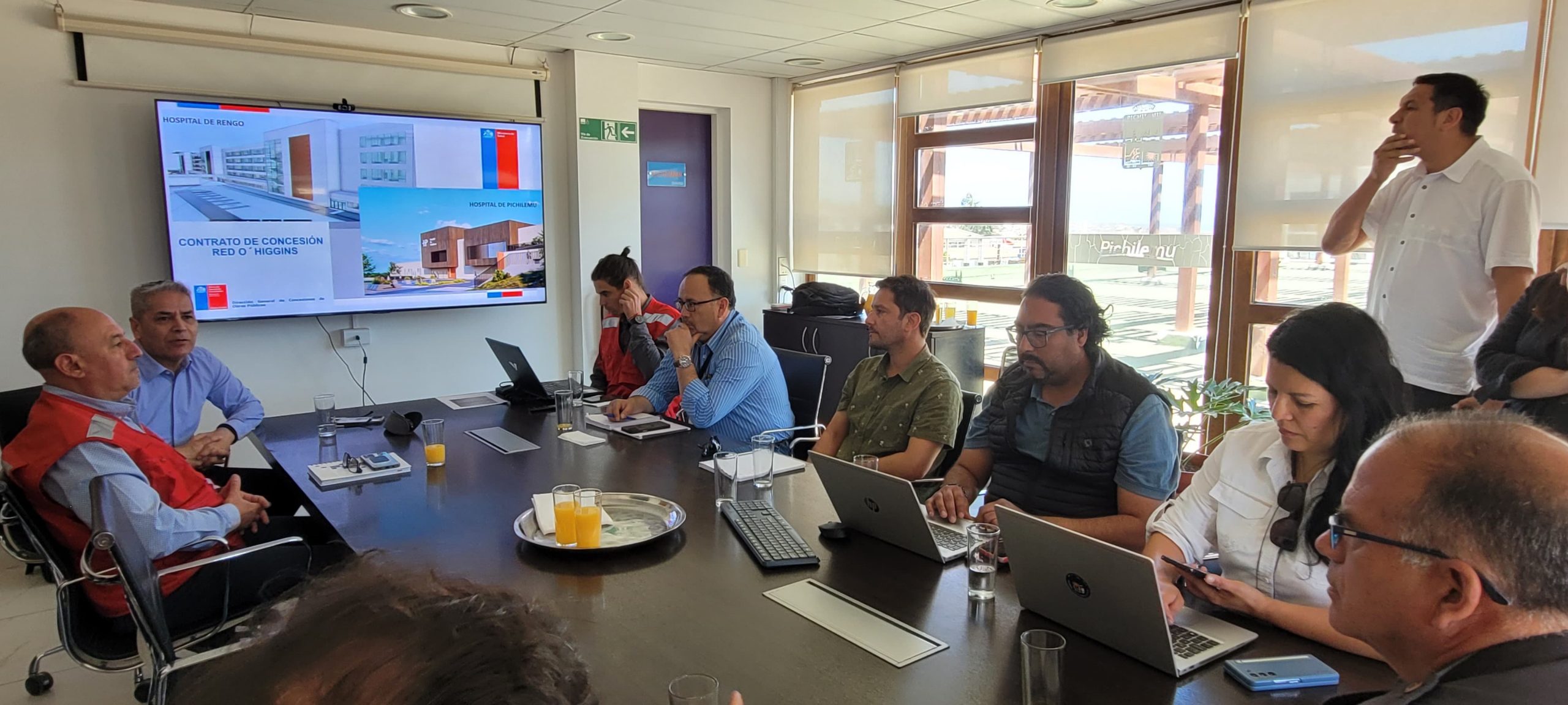 La seremi de Obras Públicas de la Región de O’Higgins, María de los Ángeles Latorre, junto al Inspector Fiscal de la Dirección General de Concesiones del MOP, Juan Andrés Vásquez, y representante del Servicio de Salud O’Higgins, Jorge Zúñiga, sostuvieron una reunión con el alcalde, Roberto Córdoba y su equipo municipal, para presentar los avances y cronograma de trabajo del proyecto del Nuevo Hospital de Pichilemu.