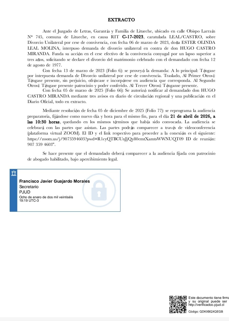 PUBLICACIONES LEGALES EN PICHILEMU Y LA PROVINCIA CARDENAL CARO PUBLICACIÓN LEGAL: Juzgado de Letras y Garantía de Pichilemu