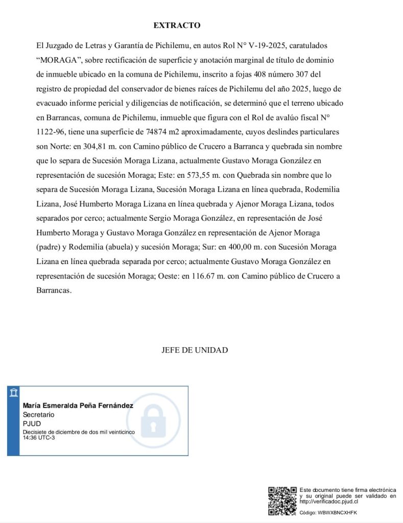 • Publicación Legal: Juzgado de Letras y Garantía de Pichilemu. Causa V-22-2025